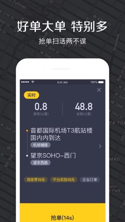 【丰富订单,赚钱更多】好单大单特别多,系统自动对订单进行推送,附近订单优先抢。单单高价,再不用担心空驶费用