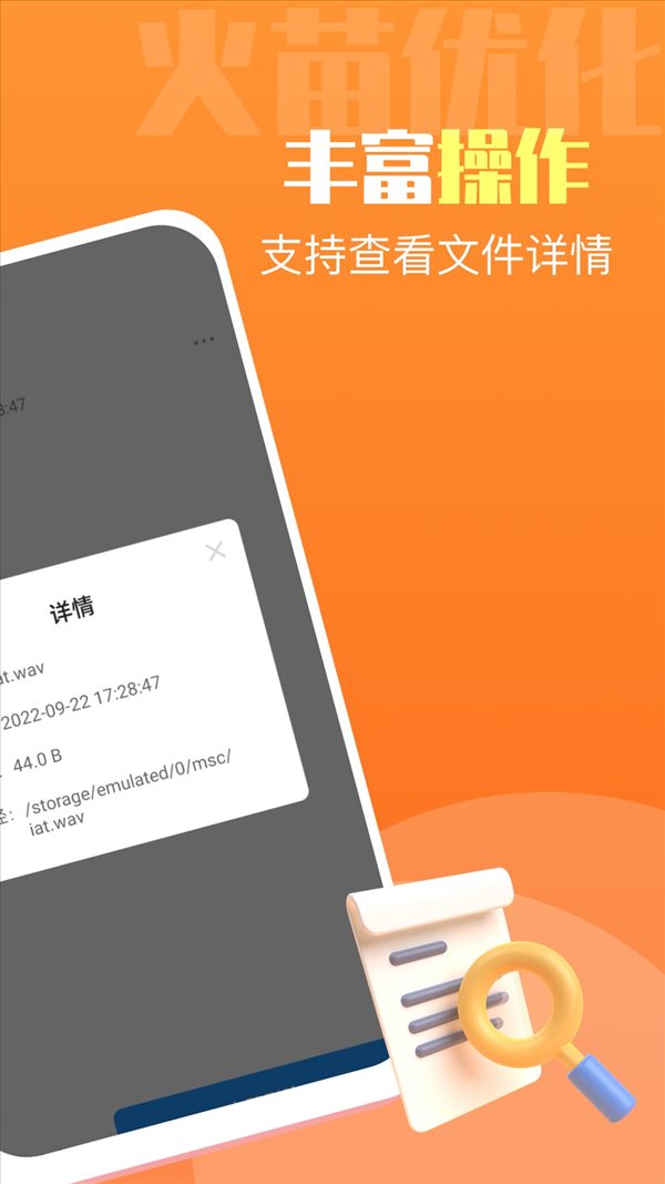 1.火苗优化大师苦于一键智能清理各种垃圾,还可以为手机内的文件提供定制化管理服务;