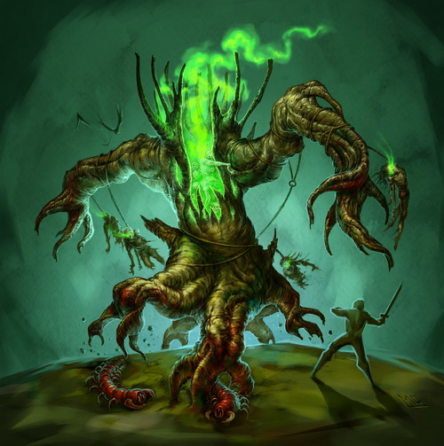 老人告诉我们,Festering森林的名字来源于其邪恶的本质:森林里的地面都会上下起伏夺去人的性命。老人特别提到了扭木,他断言扭木的邪恶来自于扭木的本性。他认为扭木来自其他的世界,而在我们的世界里,扭木只能靠吸取人类或者动物的生命能量来维持自己的生存。这种可怕的生物将自己的外形变成数目的样子,这样他们可以更好的使用他们的黑暗的力量。这种生物的移动速度十分缓慢,他们中的一些成员可以通过分泌剧毒来捕捉那些受害者。老人相信扭木以及Festering森林是由于某些召唤者们错误的法术造成的,老人相信这些召唤师们要为我们世界上数量猛增的恶魔负责。