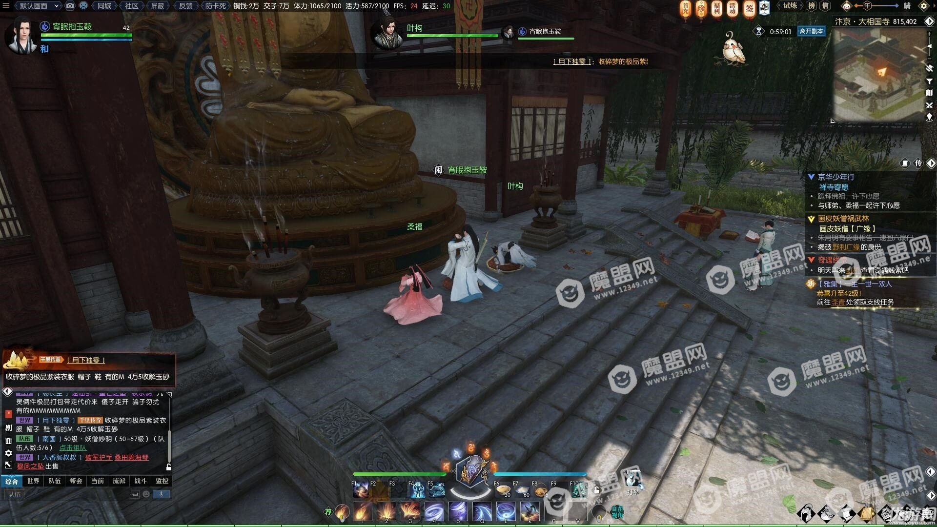挑战完【答题任务】后,继续自动寻路,一路剧情后我们会来到大相国寺,点击大佛前三个蒲团中间那一个蒲团,我们会在佛前祈愿。