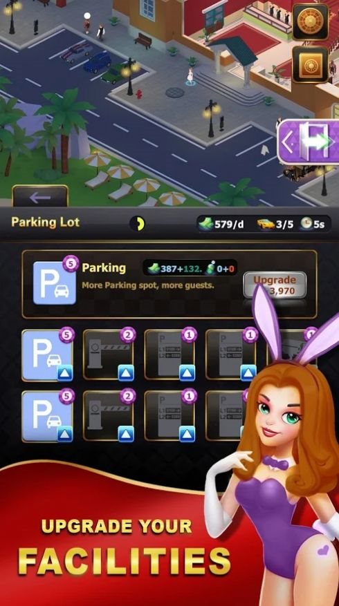 建立设施并扩展您的赌场以服务更多的客人以增加收入。