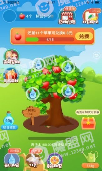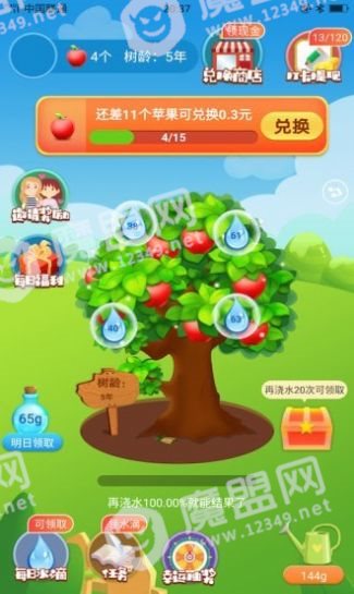 1.玩家可以种植果树,为果树浇水,果树长大后可以兑换红包奖励,每天还可以打卡领红包。