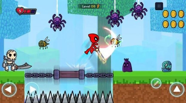 2.操控火柴人不断的跳跃前进,沿途出现的障碍物是很多的,需要灵活的避开。